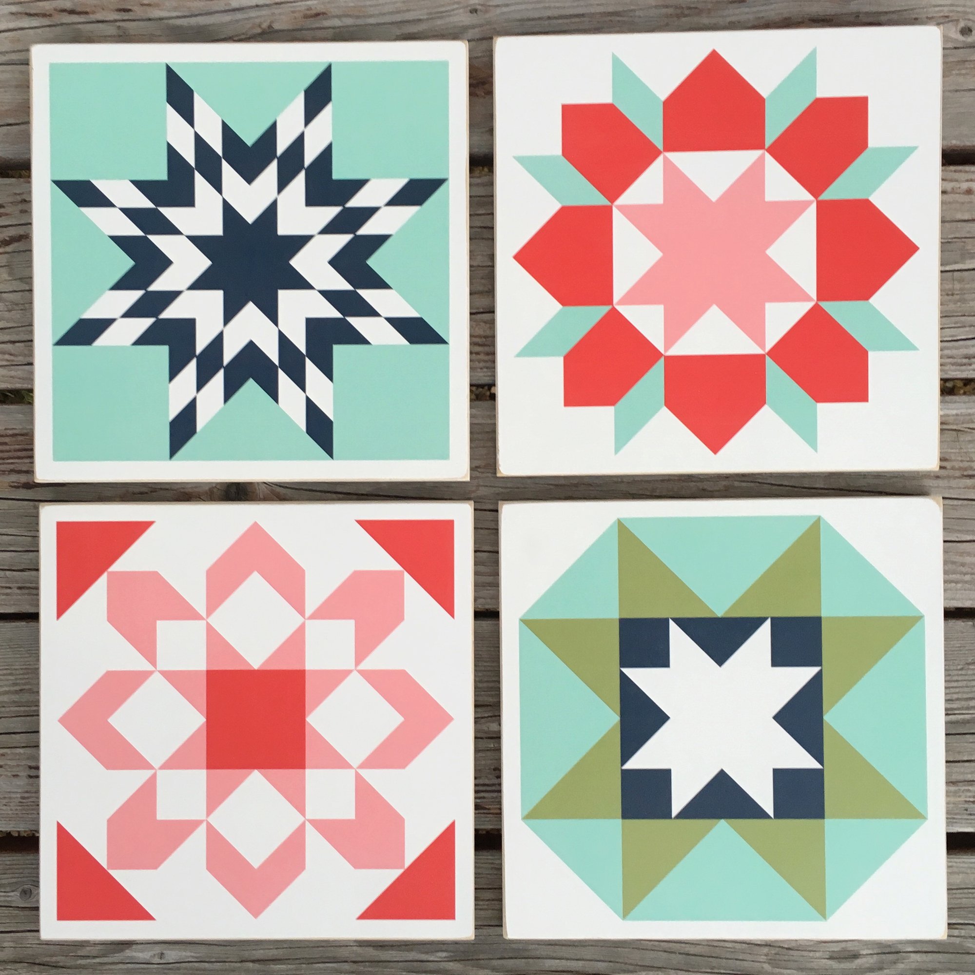 Could anything be cuter than a tiny barn quilt? We certainly don't think so! These striking Mini Barn Quilt's are many of Camille Roskelley's well-loved quilt block designs - now in the adorable MINI SIZE! These barn quilts are made of wood, painted with a creamy white background, and given a distressed edge.