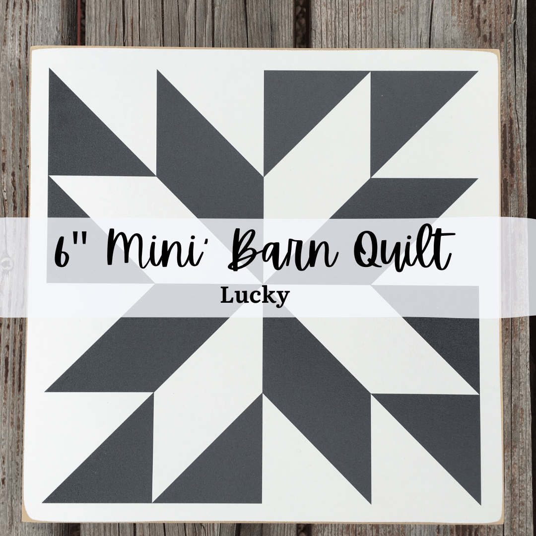One of our top selling barn quilts in an adorable 6" mini size! We're rather excited about this one. Lucky design in a classic black with a creamy white background. Painted on wood with a distressed edge. (Indoor use only)