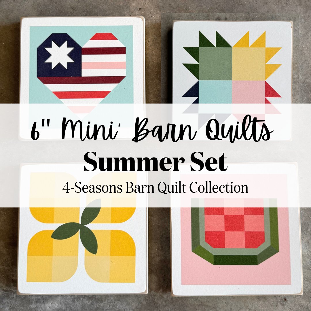 Our SUMMER barn quilts - in the 6" mini barn quilt size - which are part of our brand new Seasons Barn Quilts Collection.