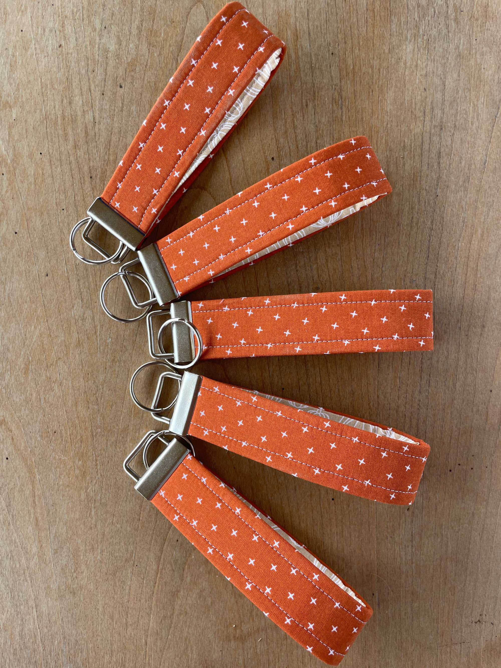 Burnt orange pattern Fabric Key Fobs - Free Shipping!