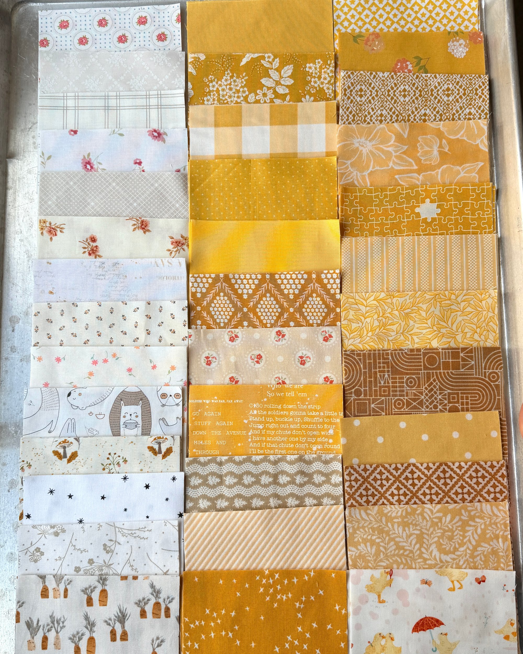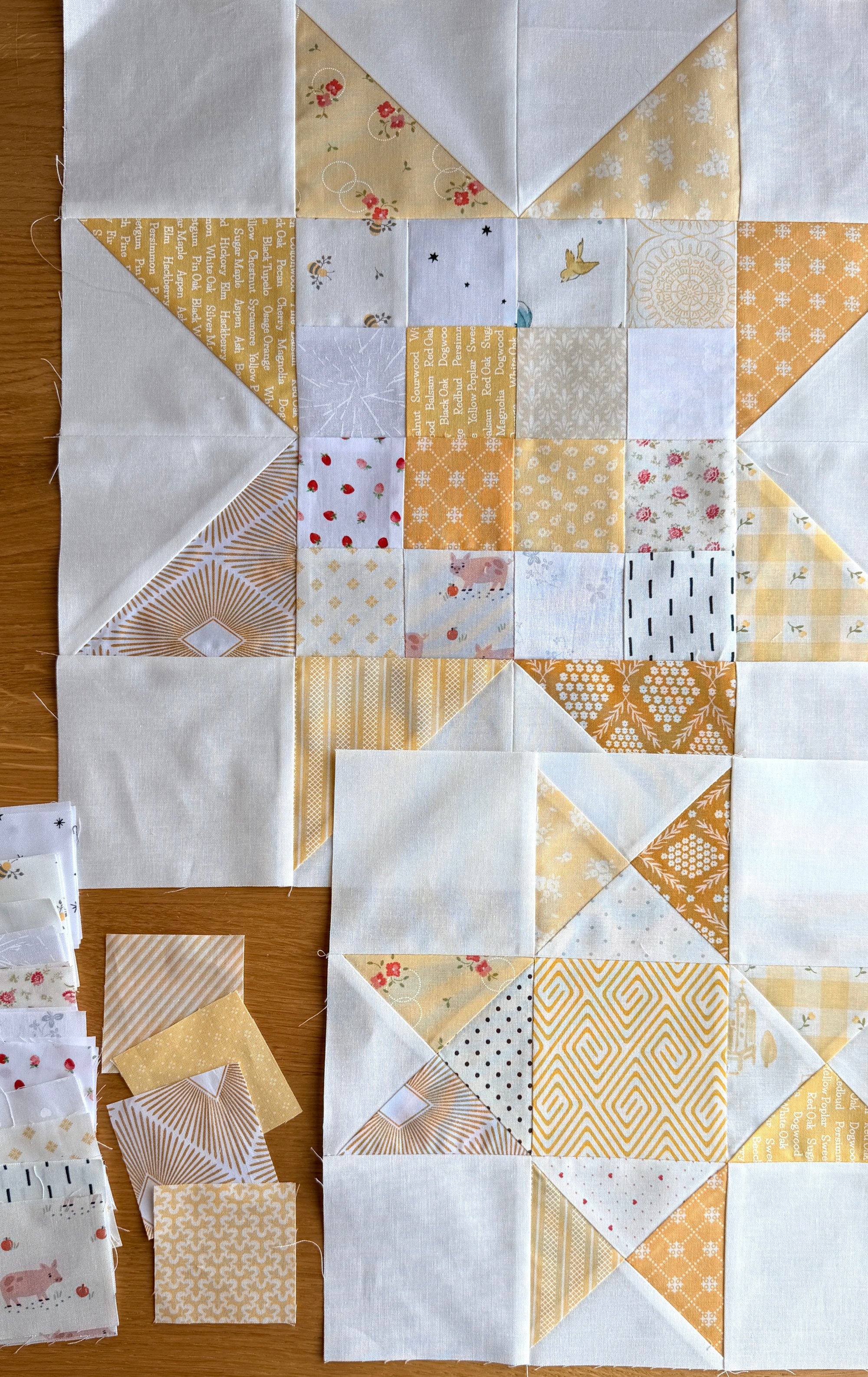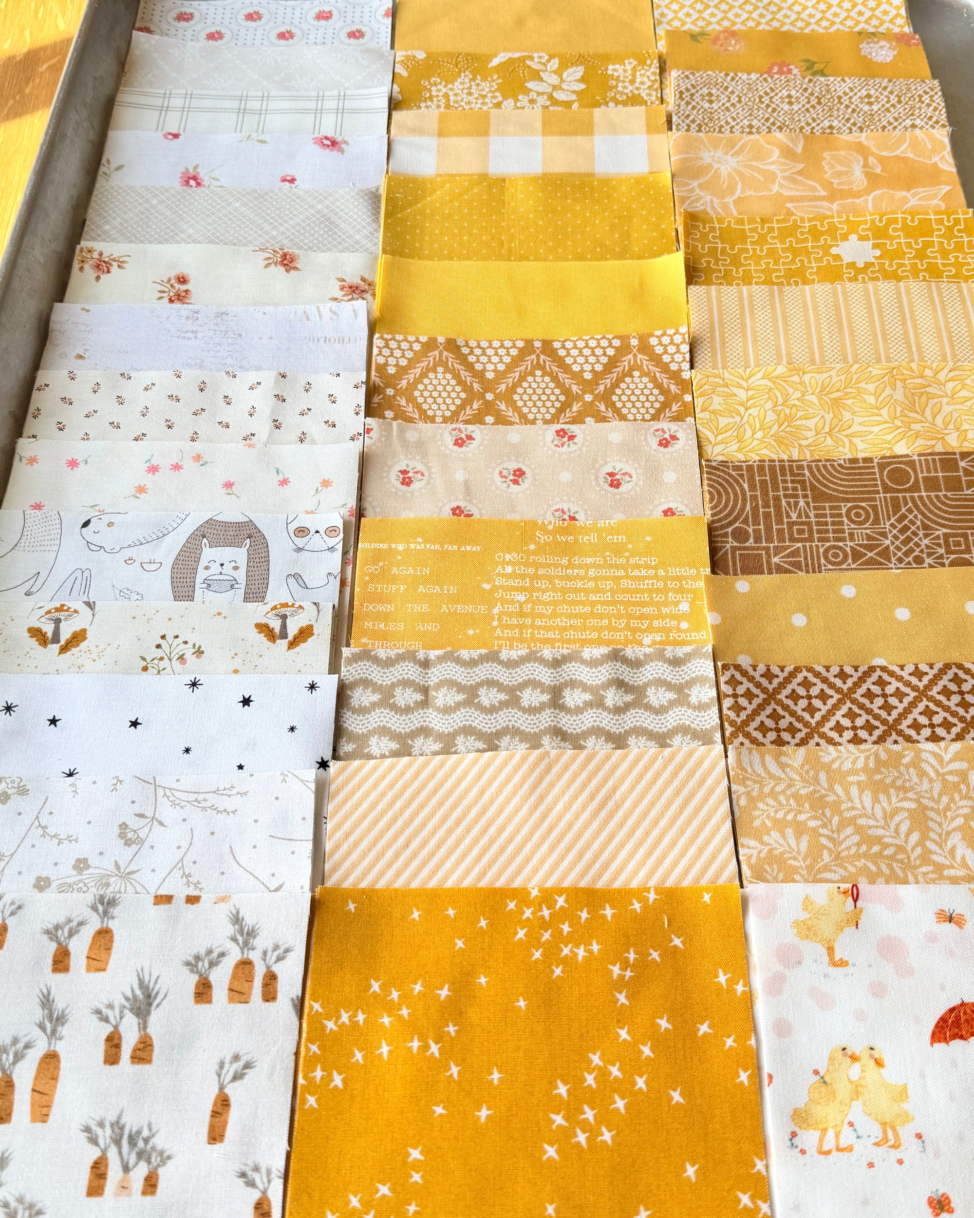 This will make a throw size quilt in either of the 2 new patterns I'm writing for the yellow fabric swap quilts.