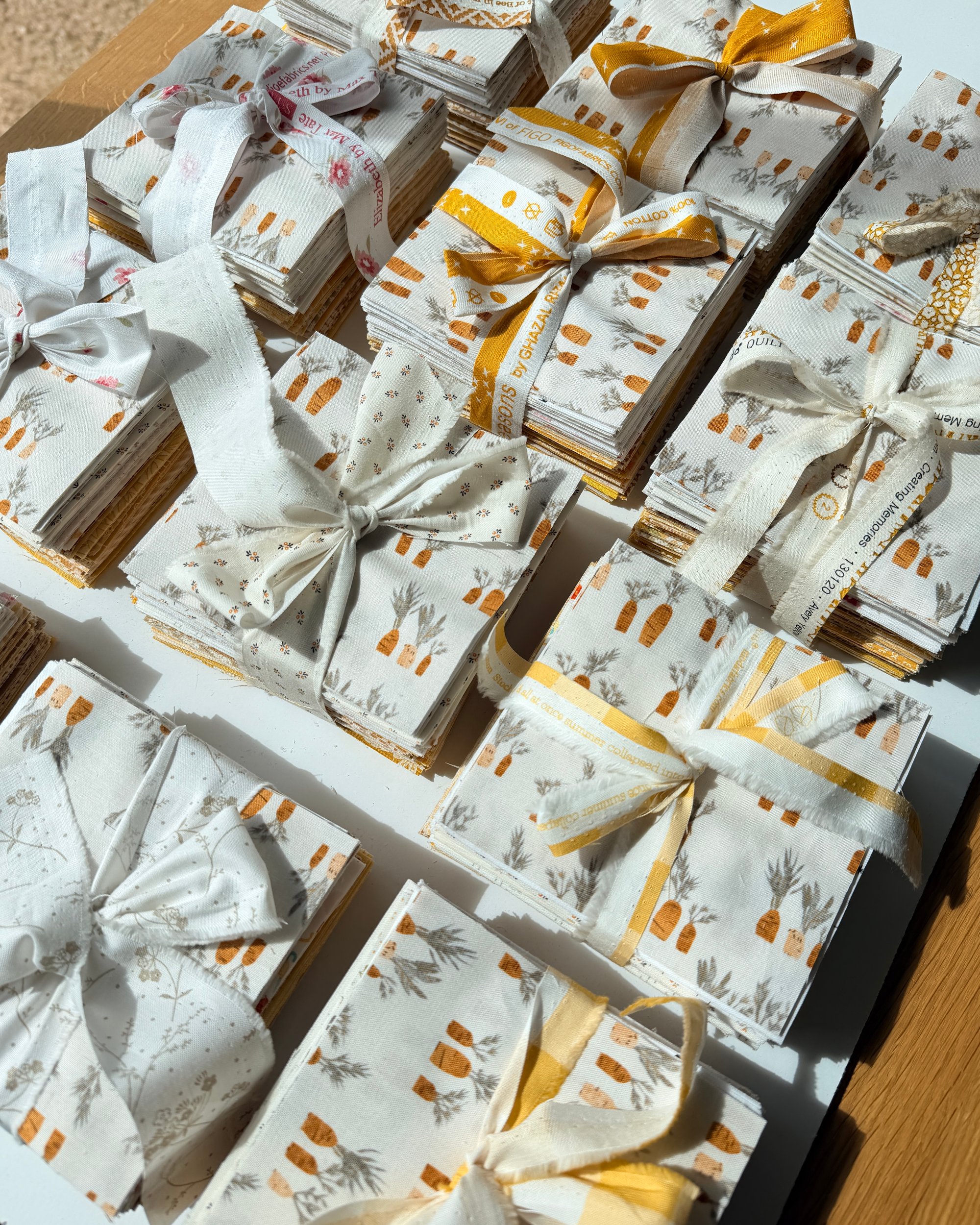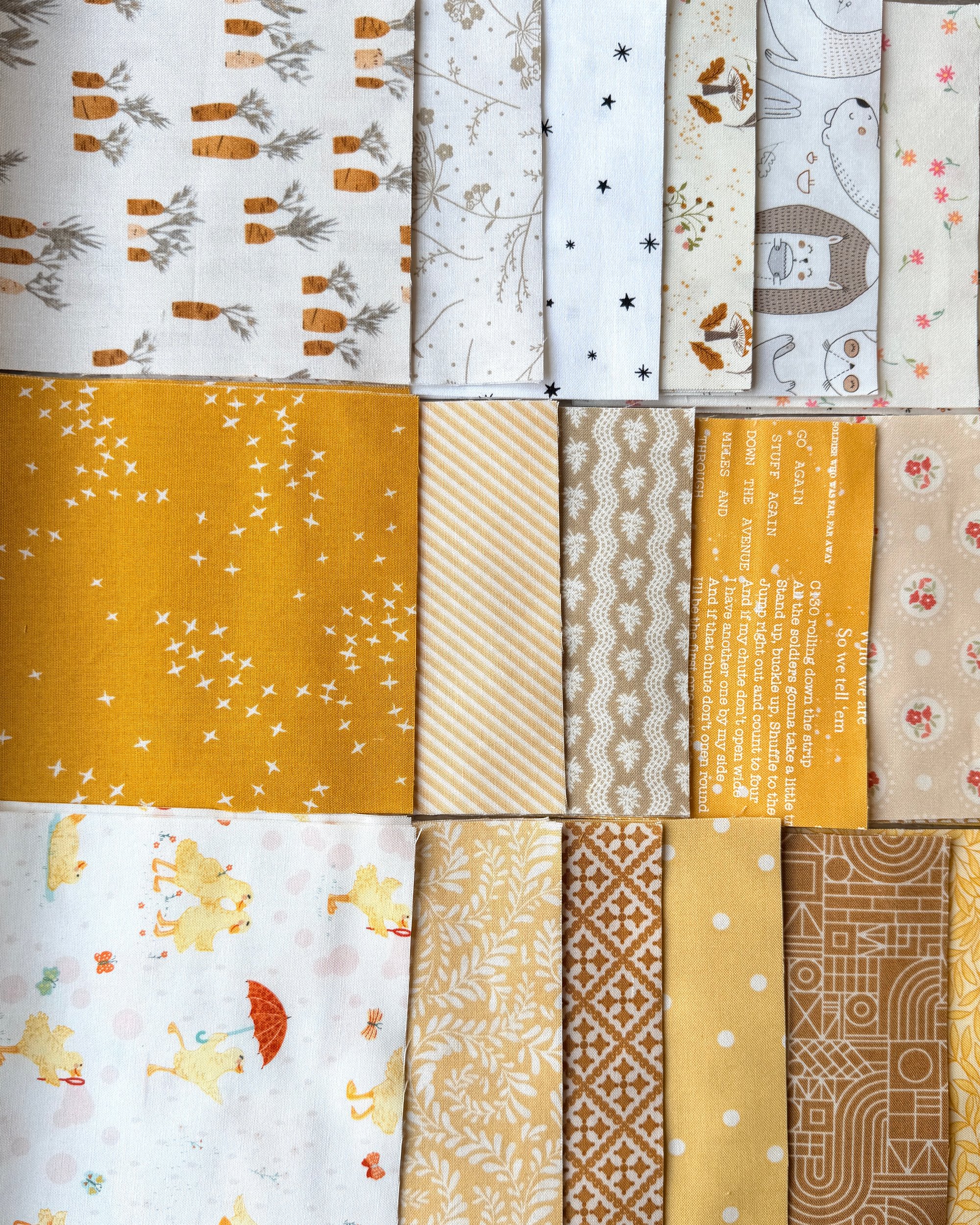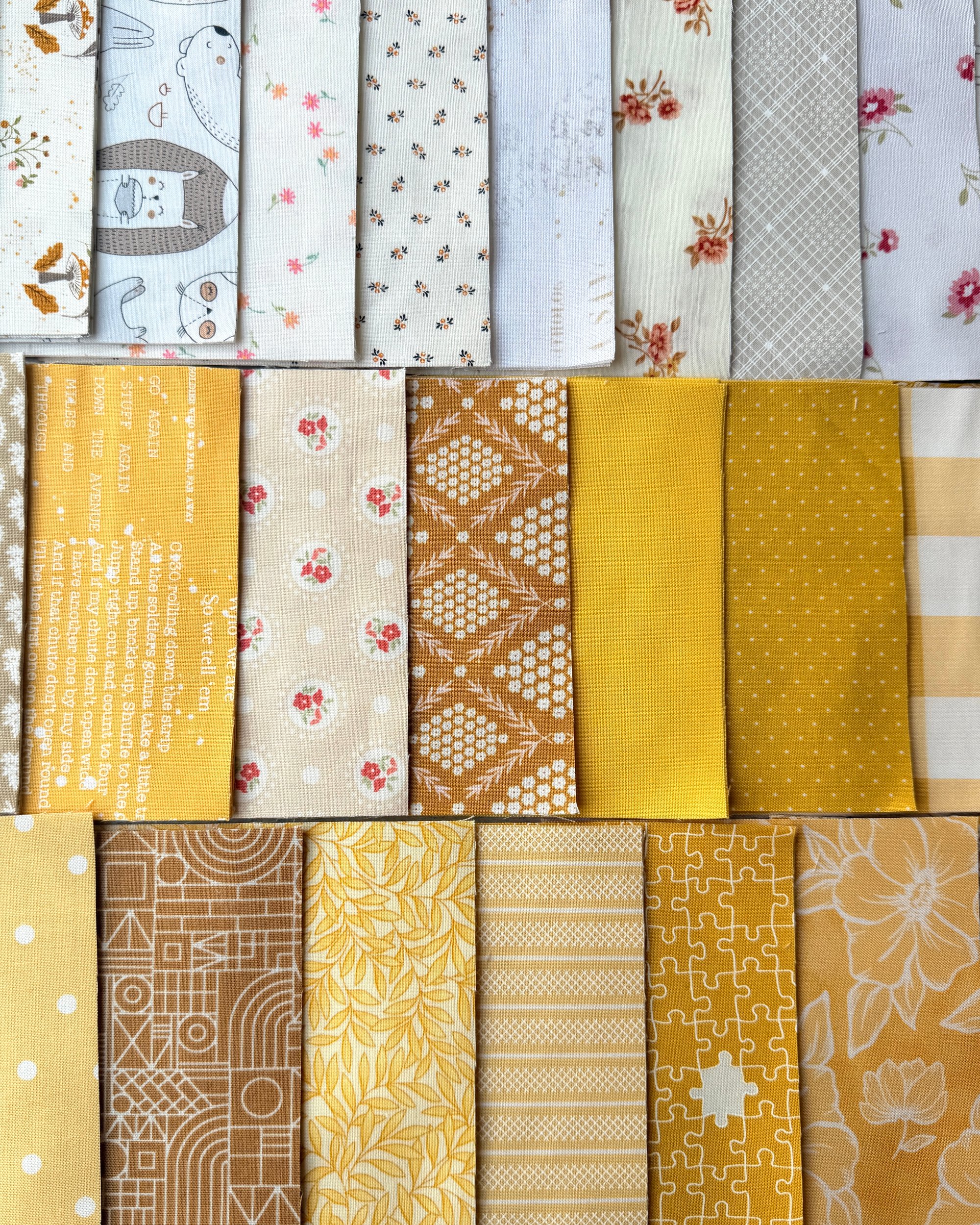 This will make a throw size quilt in either of the 2 new patterns I'm writing for the yellow fabric swap quilts.